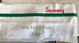 I also cut a piece of felt for the cuff and embroidered his name on it. I sewed the lining pieces, right sides together, the outer pieces, right sides together and the short ends of the cuff piece, right sides together.