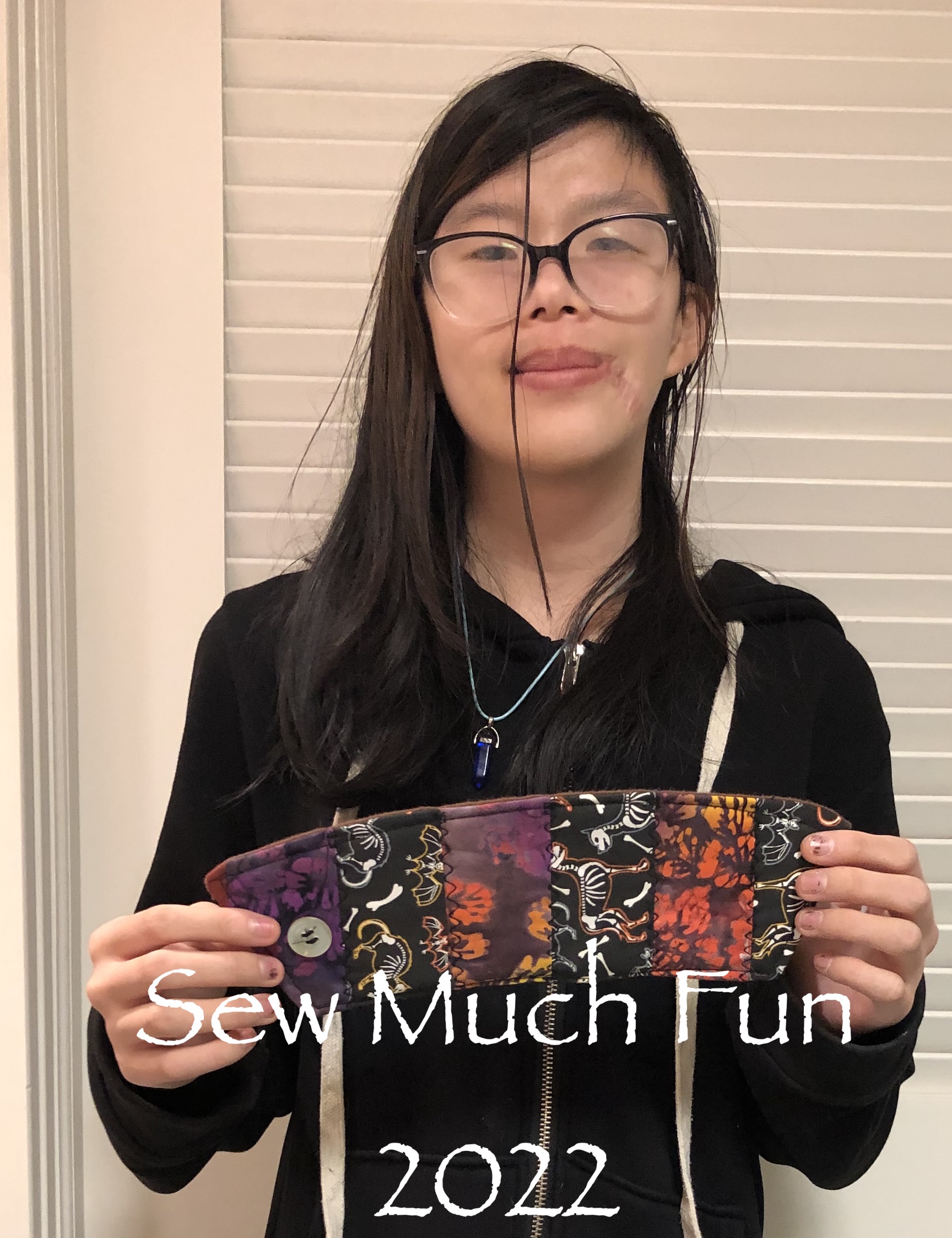 On day three they learned about edge finishes and practiced using the zigzag stitch. Then they made a drawstring bag utilizing those skills plus they learned how to use a safety pin to put ribbon through a casing.